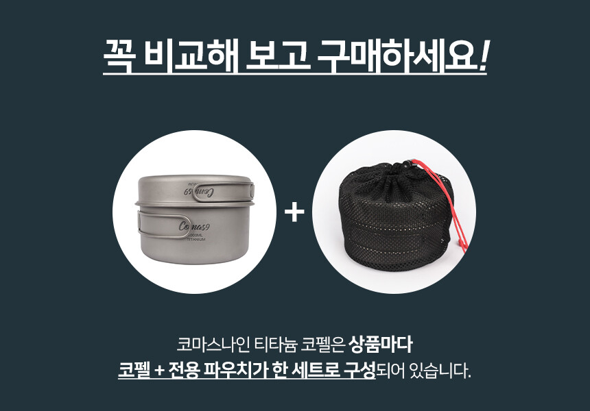 * 티타늄 코펠은 전용파우치가 기본 포함되어 있습니다