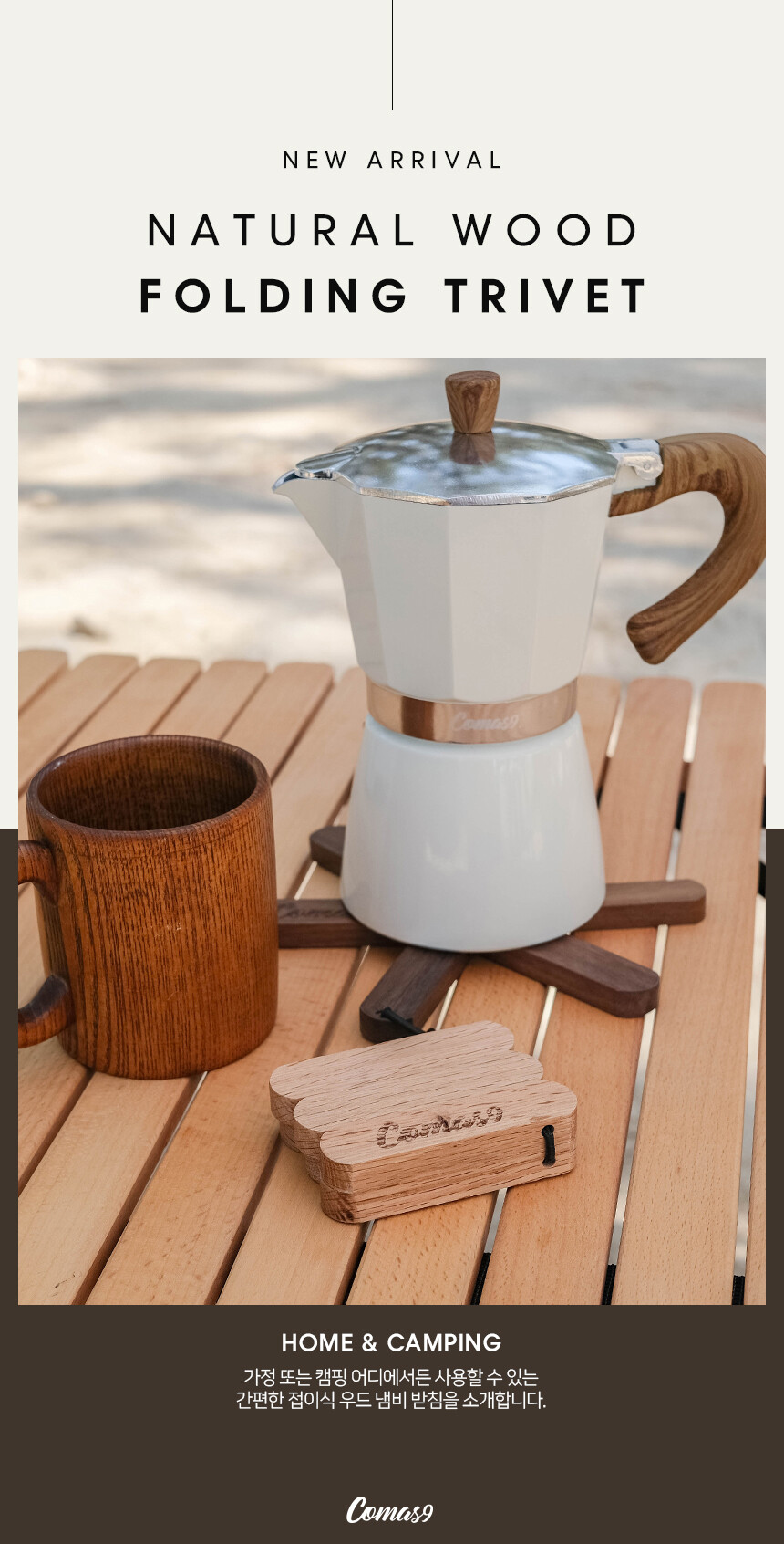 코마스나인 원목 냄비받침대 에어프라이어 캠핑 폴딩 받침대