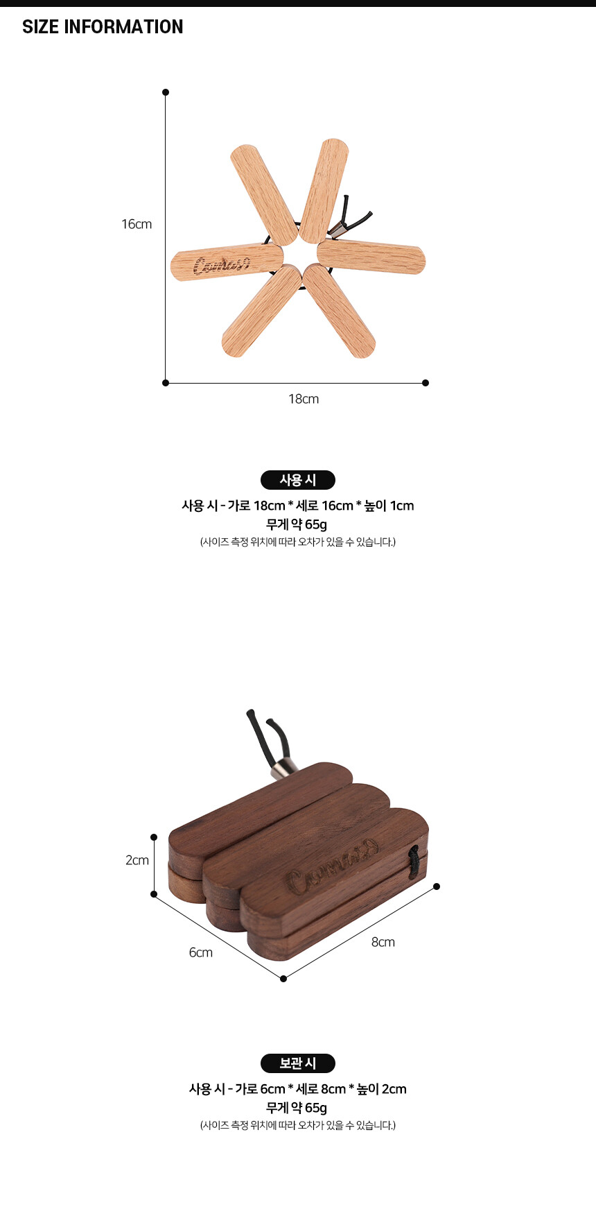 보관 시 - 가로 6cm * 세로 8cm * 높이 2cm